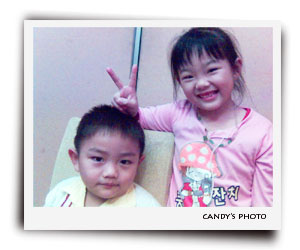 家傑和家瑩,家瑩頭髮很亂啊~~因爲一直跑來跑去,她是個交際高手哦!交際手腕比我還厲害,不管男女老少她都有本事聊起來~家傑爲什麽擺這個成熟臉??很酷的弟弟哦~~我喜歡他們叫我姐姐,阿嫲,請不要再逼他們叫我阿gim了~~聼起來好老哦~~呵呵![]()