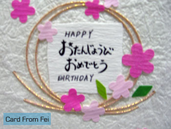 6月23日早上,我收到了fei從日本寄來的愛心卡,几乎每一年都收到fei的卡,心中溫暖非常。漂亮的櫻花卡和細心的文字,fei的愛心與用心我都好感動,不過,實在很想和fei說一聲,fei,妳弄錯了,我嫁的是胡先生,不是許先生呀。 哈哈哈哈哈~~大頭鬼問我何時有了個“契家佬”,嘻嘻~~ 要和糊塗虫fei說:“謝謝妳噢~~很愛很愛妳”